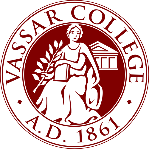 The emblem of Vassar College, an elite liberal arts college in NY, US, all in crimson red.