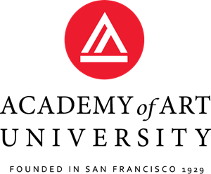 The logo of Academy of Art University in San Francisco, a red circle with a white stylized 'A' logo in the center.